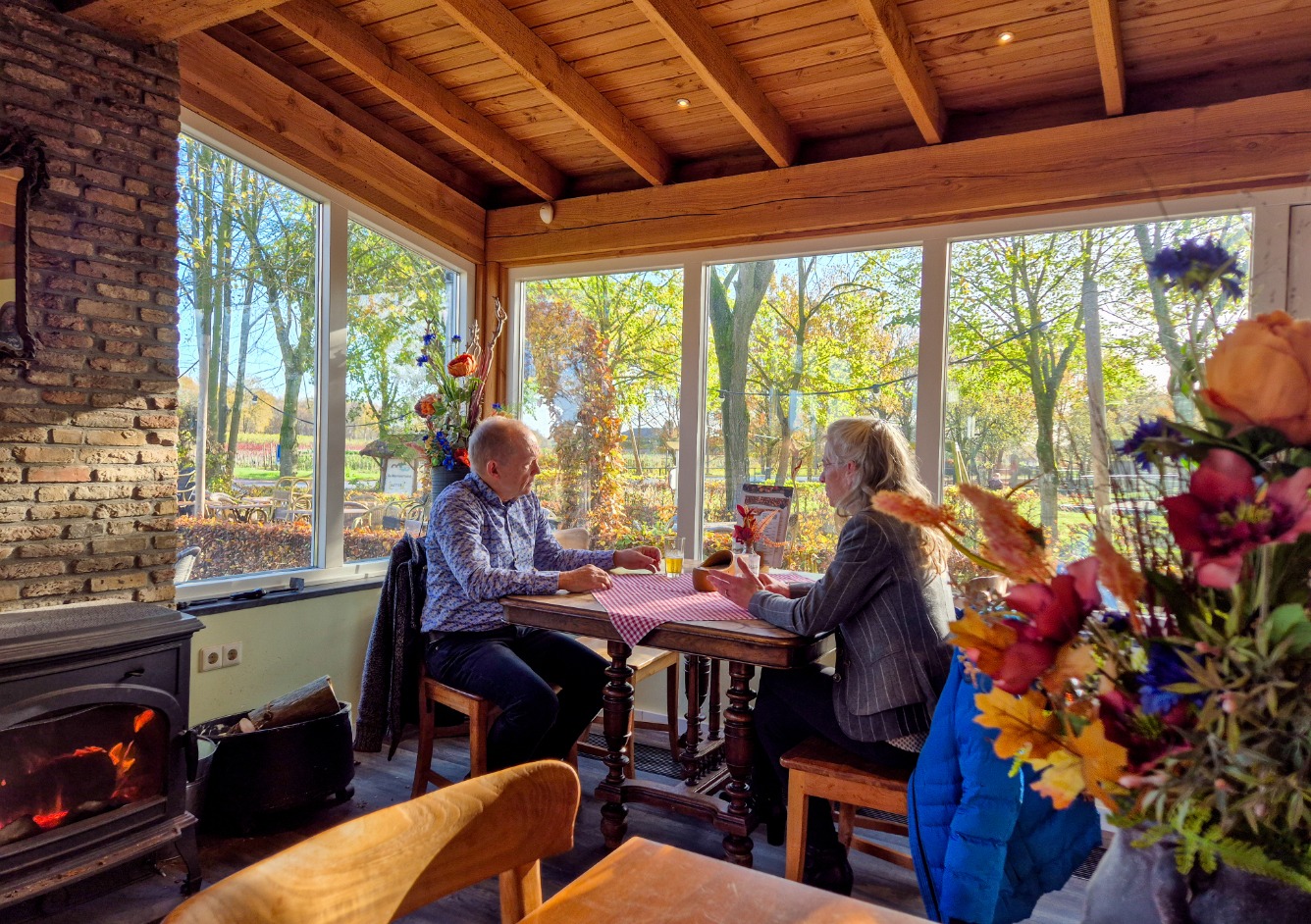 Neem binnen lekker plaats bij de openhaard