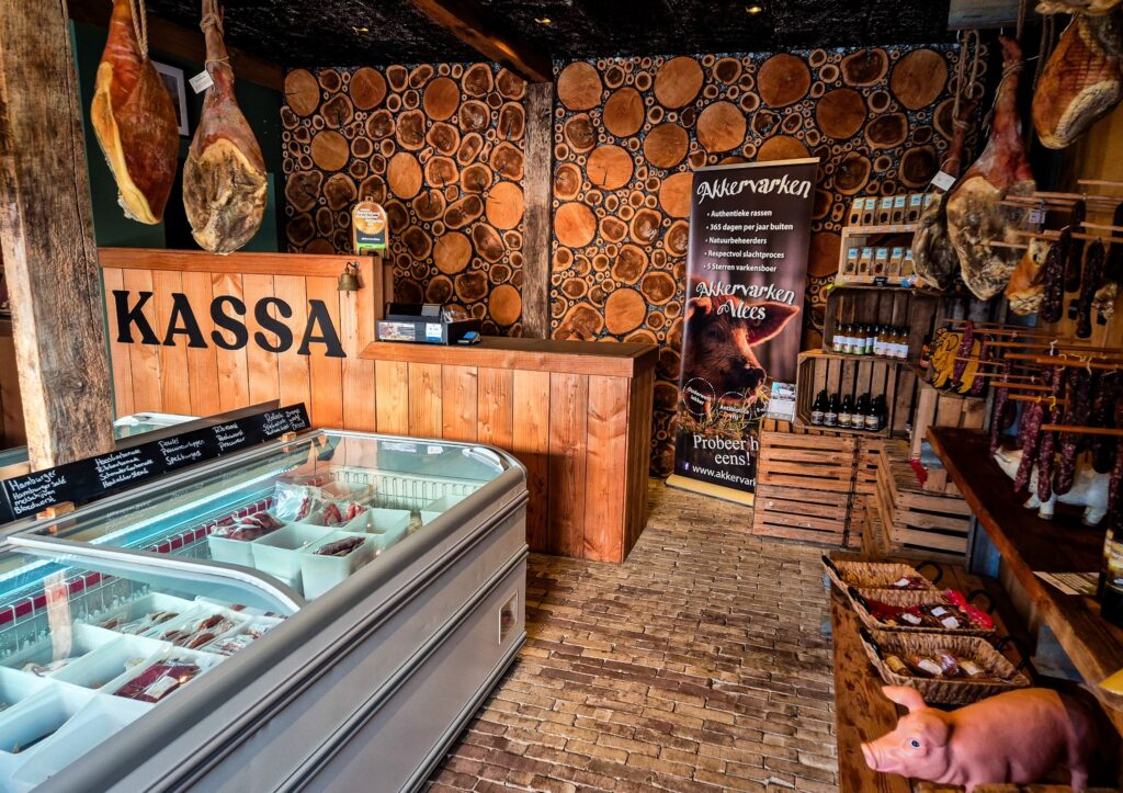 Neben all den Tieren und Aktivitäten finden Sie hier auch „Akkervarken“ (Feldschwein), einen einzigartigen Hofladen mit einer wunderbaren Geschichte. Feldschweine führen ein wunderbares, freies Leben im Freien. Sie wühlen in der Erde, helfen den Bauern beim Graben und halten Unkraut in Schach. In Valthermond tummeln sich nicht weniger als 250–300 Schweine. Wenn Sie also draußen ein Schwein herumstreunen sehen, ist die Wahrscheinlichkeit groß, dass es eines der Feldschweine ist.