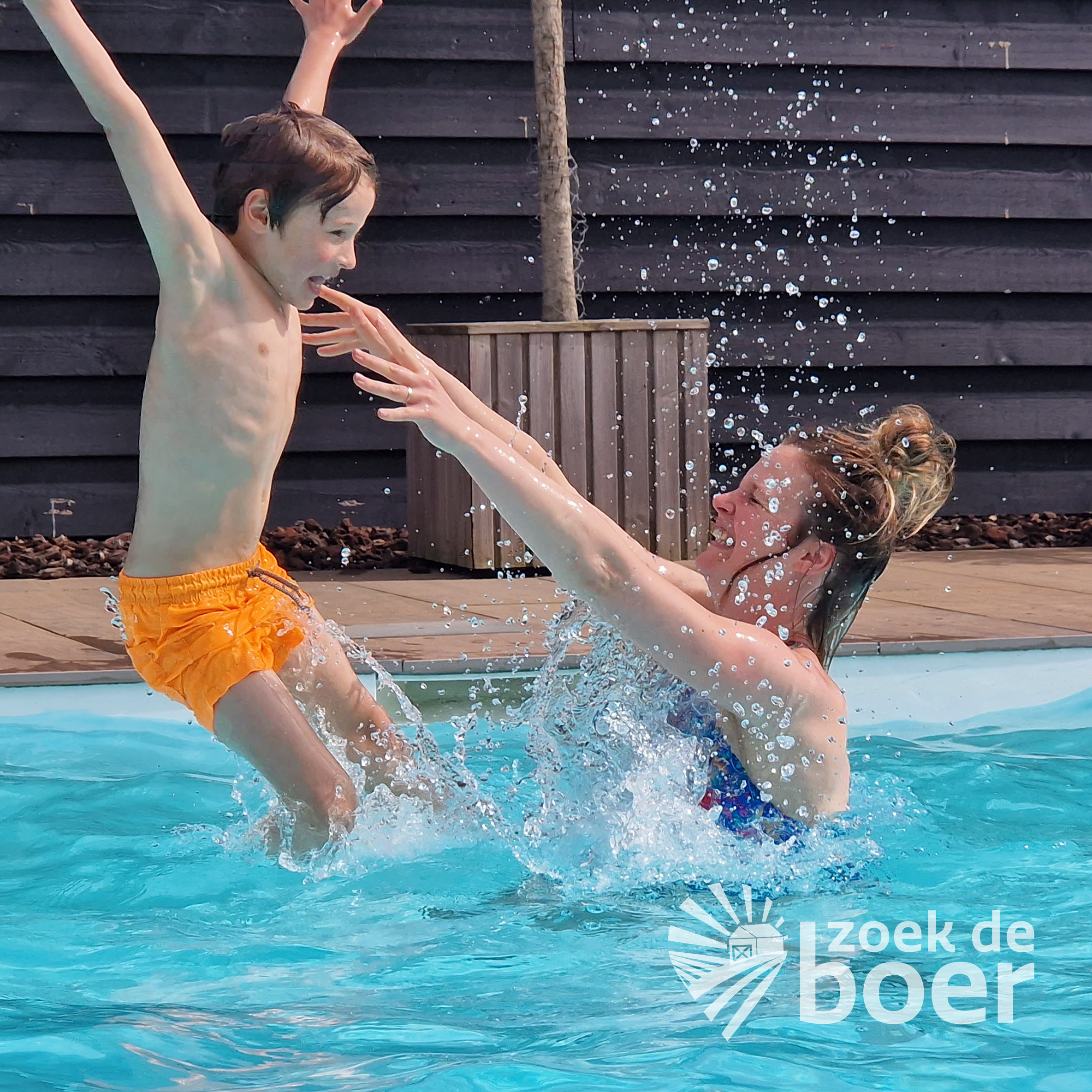 Een zwembad tijdens je vakantie bij de boer, hoe fijn is dat?